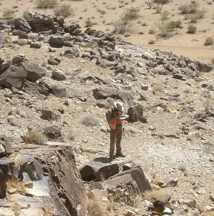 As part of a recent on-call contract with Western Power Administration’s Desert Southwest Region (DSW), Aspen completed more than 20 cultural resources task orders associated with transmission system maintenance activities in Arizona, California and Nevada. These task orders covered a wide range of cultural resources services from pedestrian survey to authoring an historic context covering all DSW facilities including approximately 3,300 miles of transmission lines and 95 substations. During one of the pedestrian surveys, Aspen revisited and re-evaluated 56 cultural resources sites for National Register of Historic Places eligibility along the Blythe–Headgate Rock and Parker–Blythe transmission lines. Most sites were prehistoric in age and ranged from a single trail segment to complex camps with trails, cleared areas, and geoglyphs.